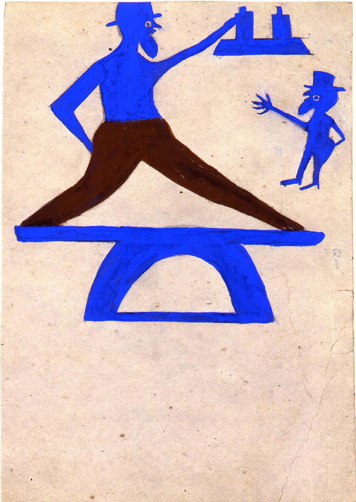 Bill Traylor (1853, near Pleasant Hill and Benton, Alabama–1949, Montgomery, Alabama), Untitled, Montgomery, Alabama, 1939–1942, Poster paint and graphite on cardboard, 10 3/4 x 15 in., American Folk Art Museum, New York, Gift from the Estate of Lanford Wilson, 2022.24.1